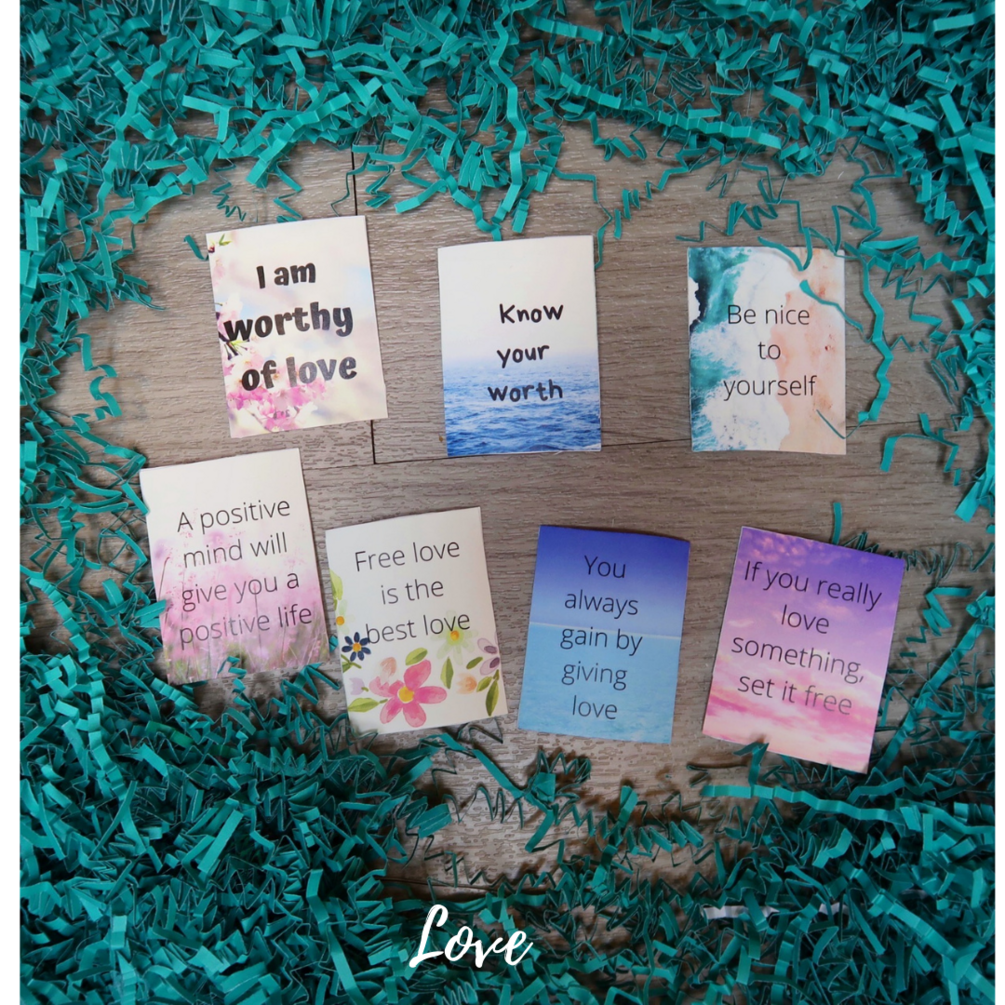 You will get to pick 2 themes you would like your cards to represent. You will have a choice between love, wealth, joy, motivation, and confidence. Please see images for examples.